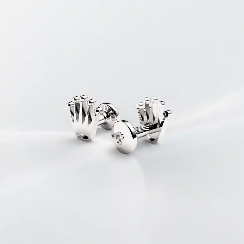 Rolex Manschettenknöpfe in 18 Karat Weißgold und in Form der unverkennbaren Rolex Krone.